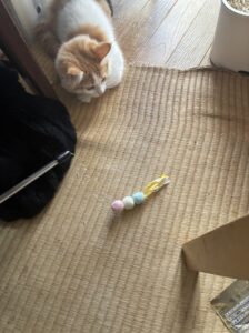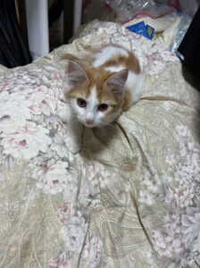 メリちゃんとはこれまでも何回かあったことがあるまだ生まれて数か月の子猫。私はもうそこにはいないけど、おうちの中の気配は、ちゃんとわかるんだ。だから、なんとなく、小さなお客さまが来たんだなぁって感じてるところなんだ。